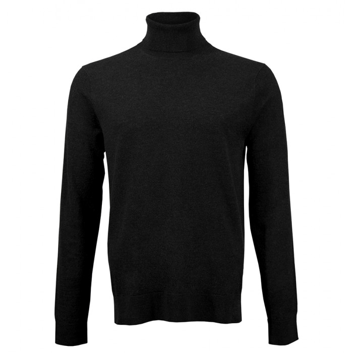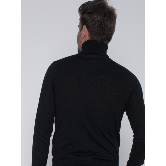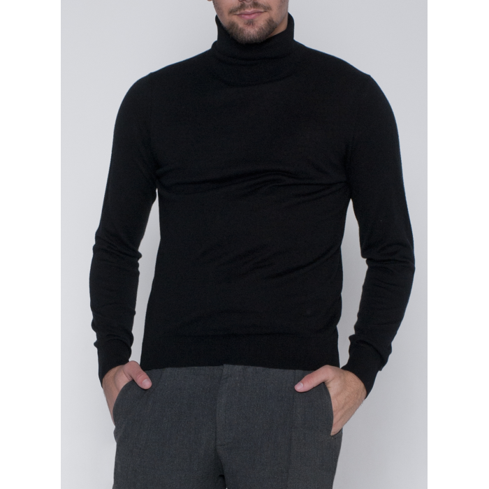 Джемпер мужской / унисекс TRI&CO CASHMERE, высокий ворот, 50% шерсть 50% шёлк, сделано в Италии, ID: M152-1717/10101/black